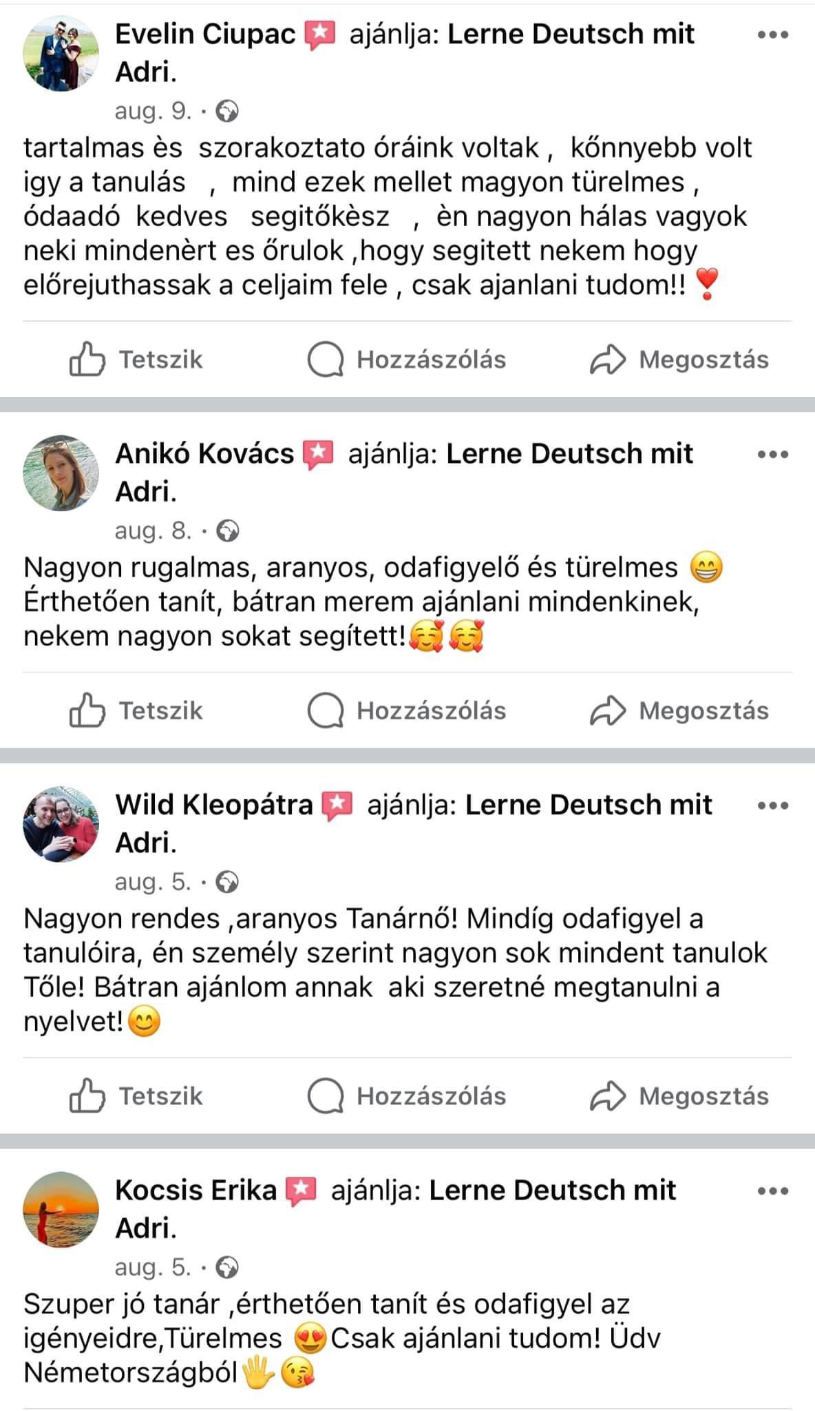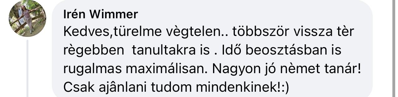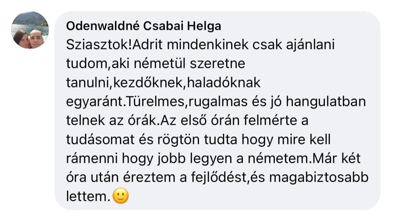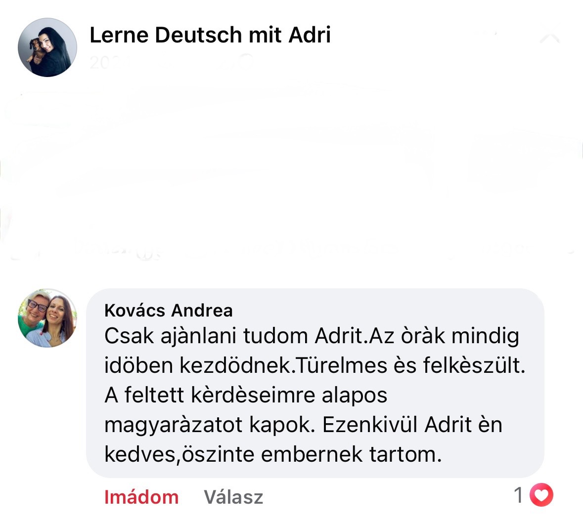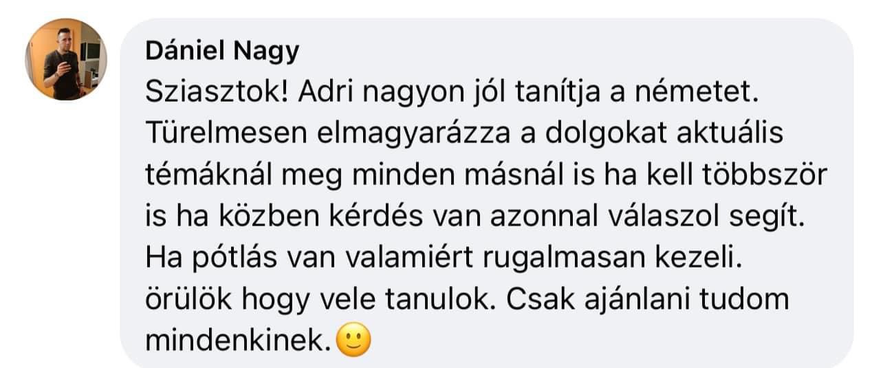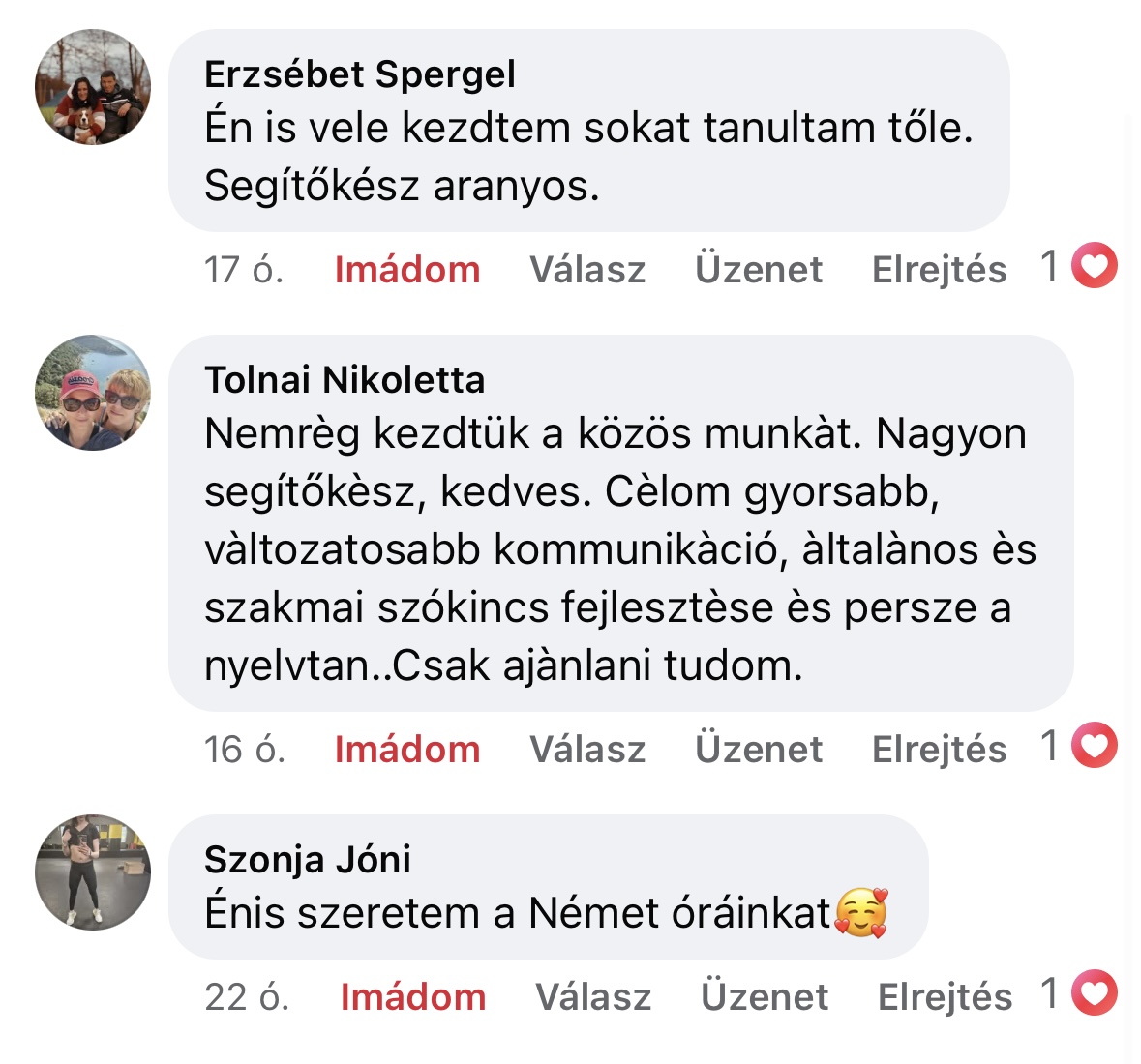 A legjobb visszajelzés mindig azoktól érkezik, akik már végigjárták az utat. Olvasd el, mit mondanak rólam azok, akik velem tanultak németül – hogyan segített nekik a közös munka, és milyen élmény volt számukra a tanulás. Lehet, hogy pont olyan kérdéseid voltak, mint nekik, és a válaszaikat náluk találod meg először.