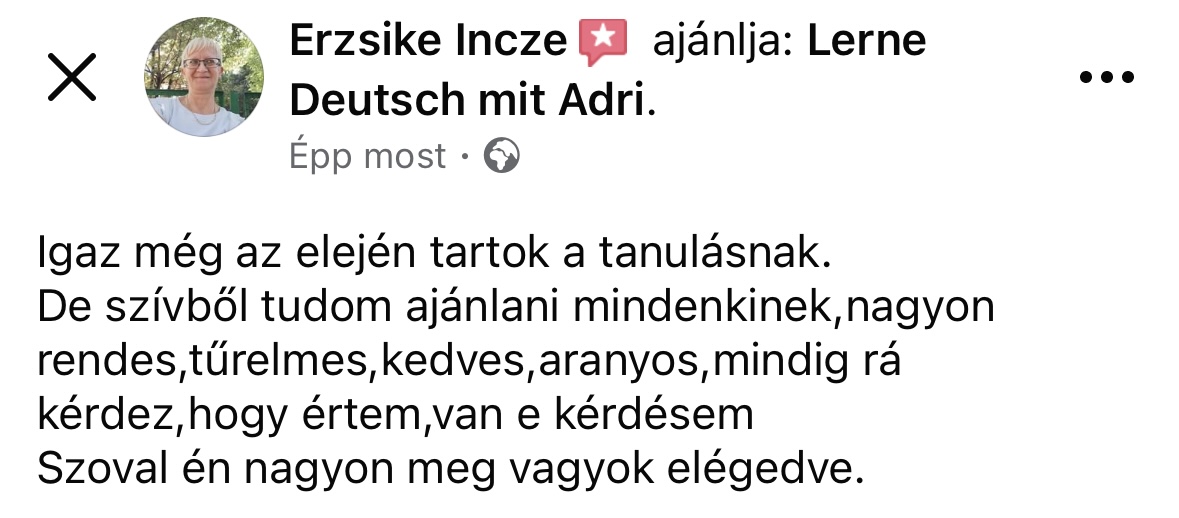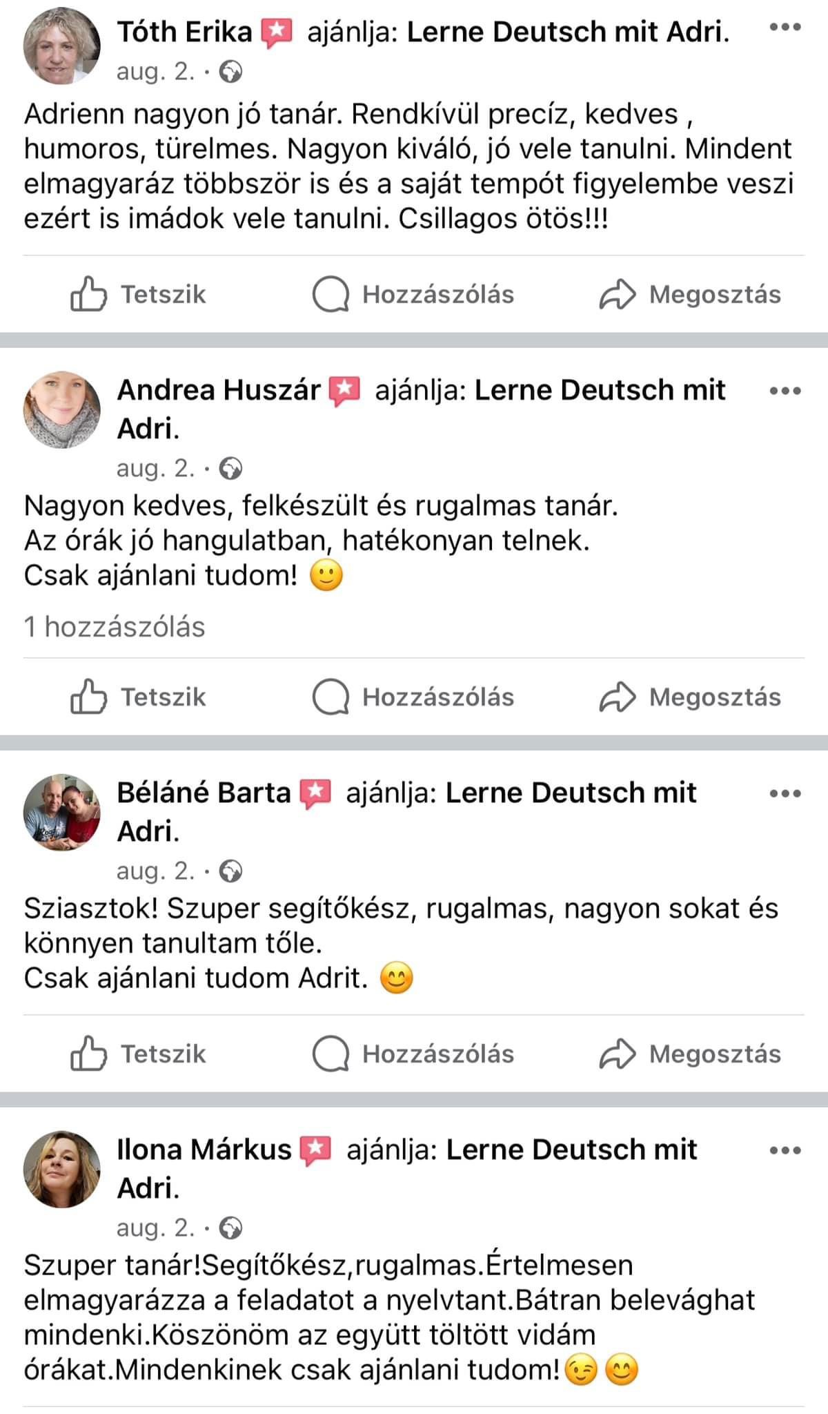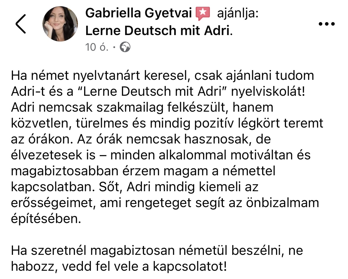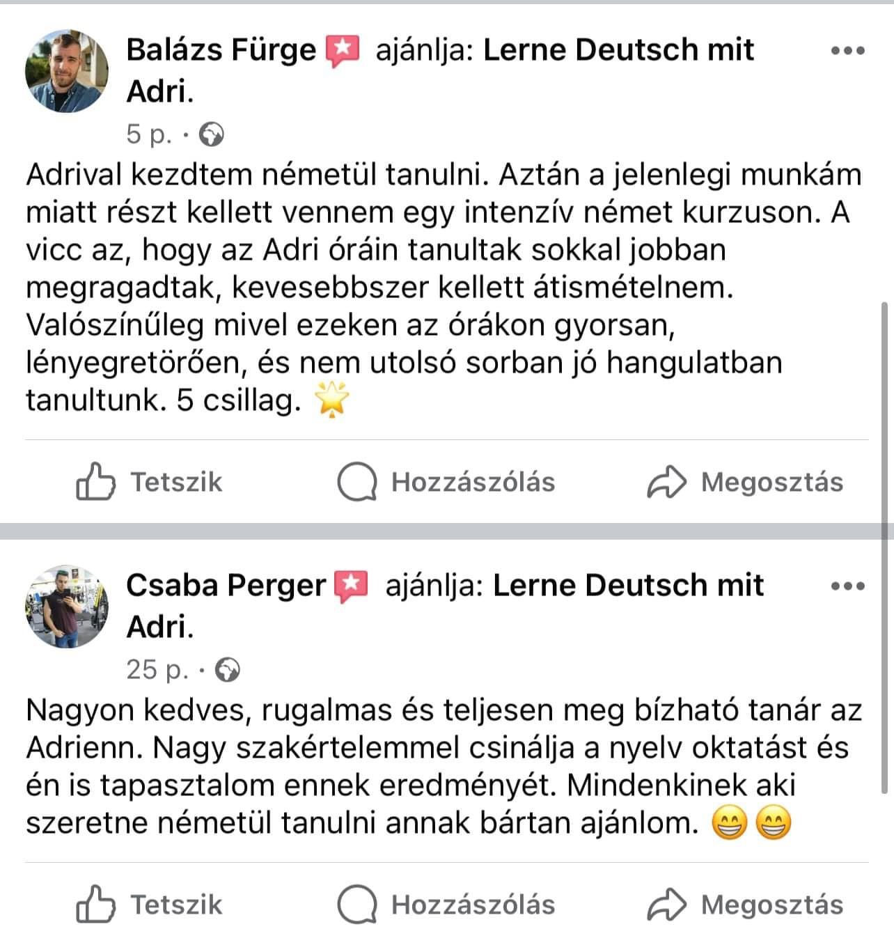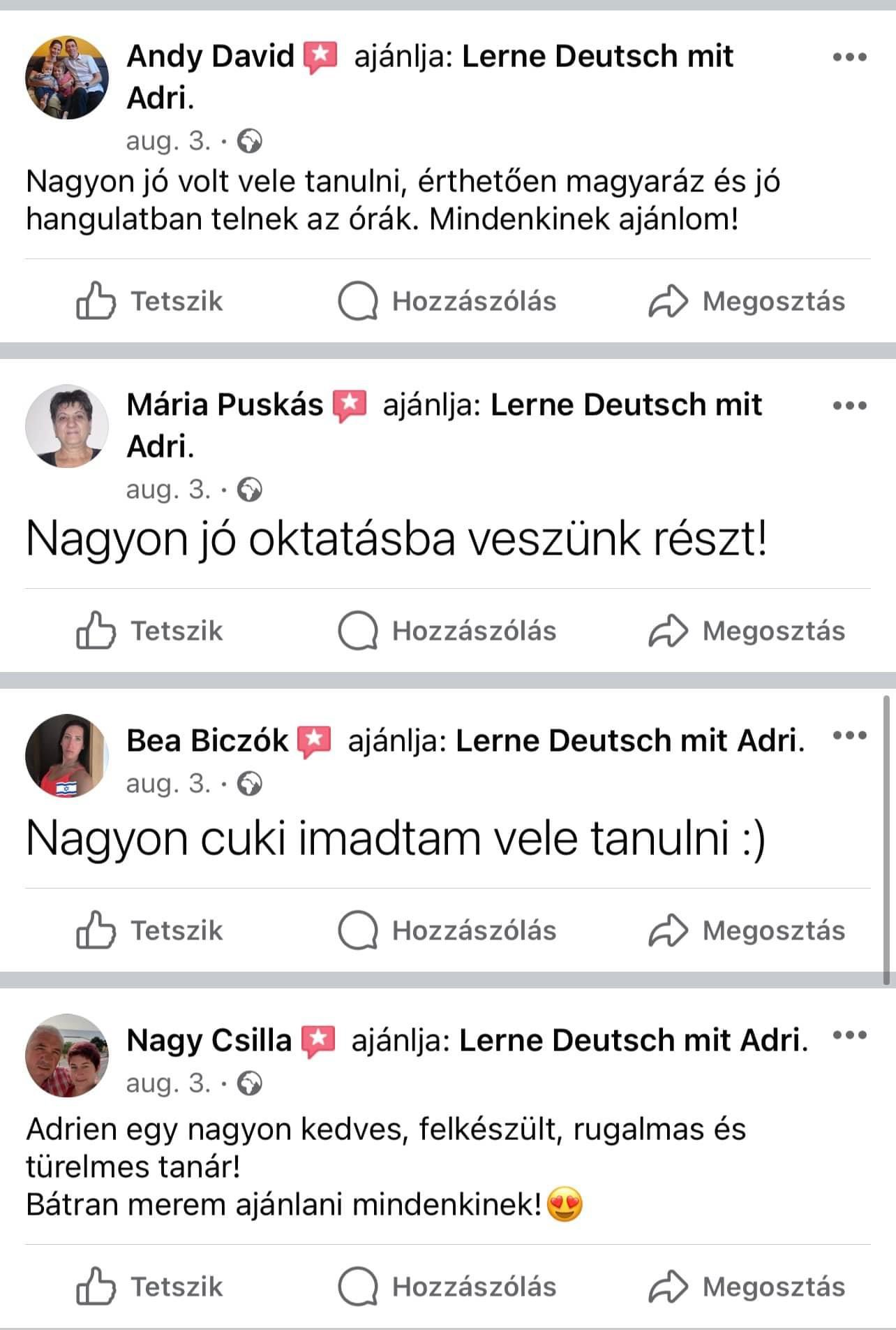 A legjobb visszajelzés mindig azoktól érkezik, akik már végigjárták az utat. Olvasd el, mit mondanak rólam azok, akik velem tanultak németül – hogyan segített nekik a közös munka, és milyen élmény volt számukra a tanulás. Lehet, hogy pont olyan kérdéseid voltak, mint nekik, és a válaszaikat náluk találod meg először.