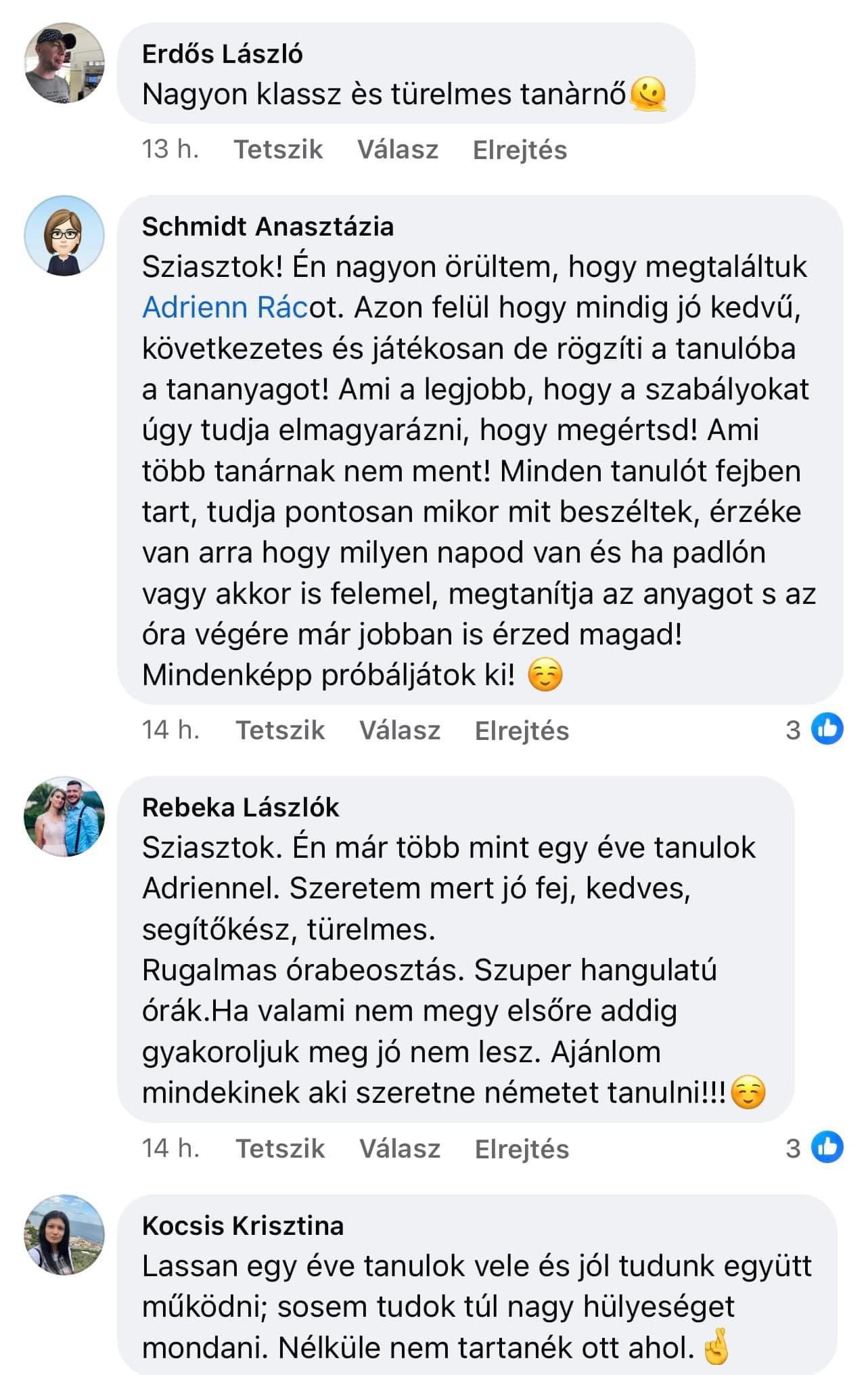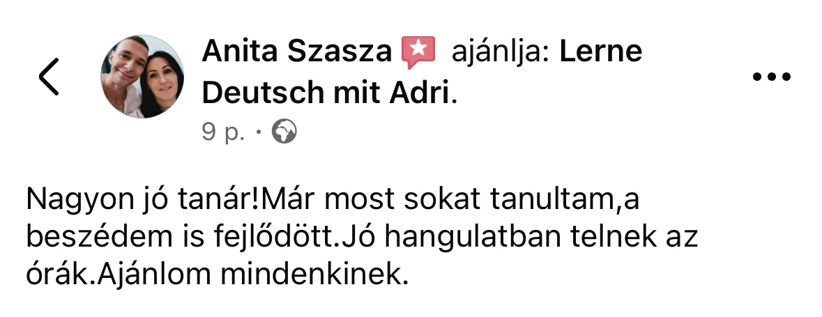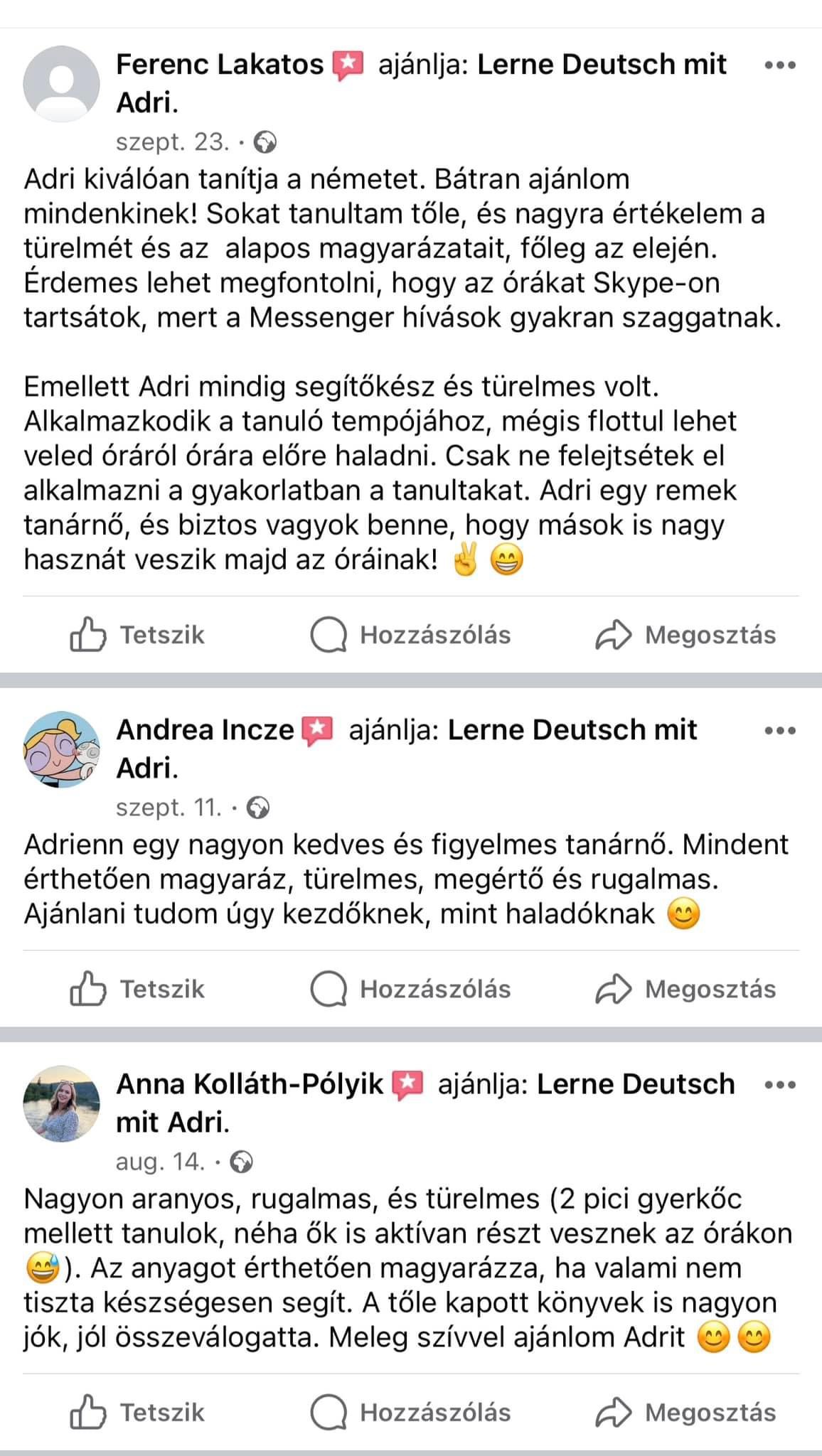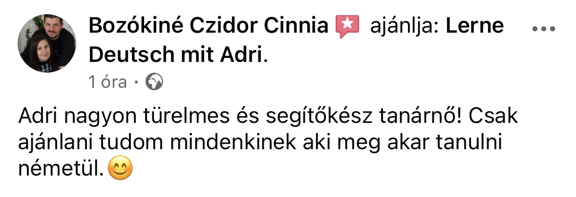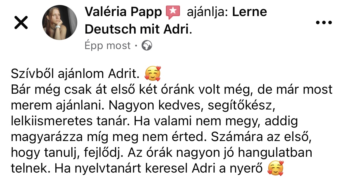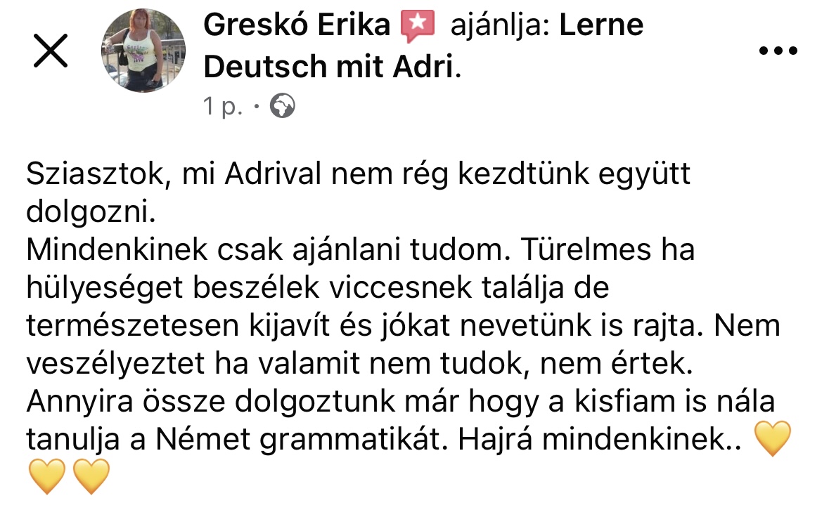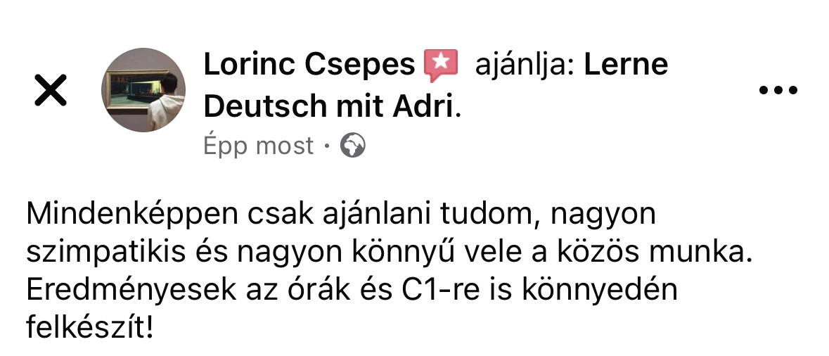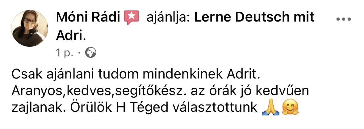 A legjobb visszajelzés mindig azoktól érkezik, akik már végigjárták az utat. Olvasd el, mit mondanak rólam azok, akik velem tanultak németül – hogyan segített nekik a közös munka, és milyen élmény volt számukra a tanulás. Lehet, hogy pont olyan kérdéseid voltak, mint nekik, és a válaszaikat náluk találod meg először.
