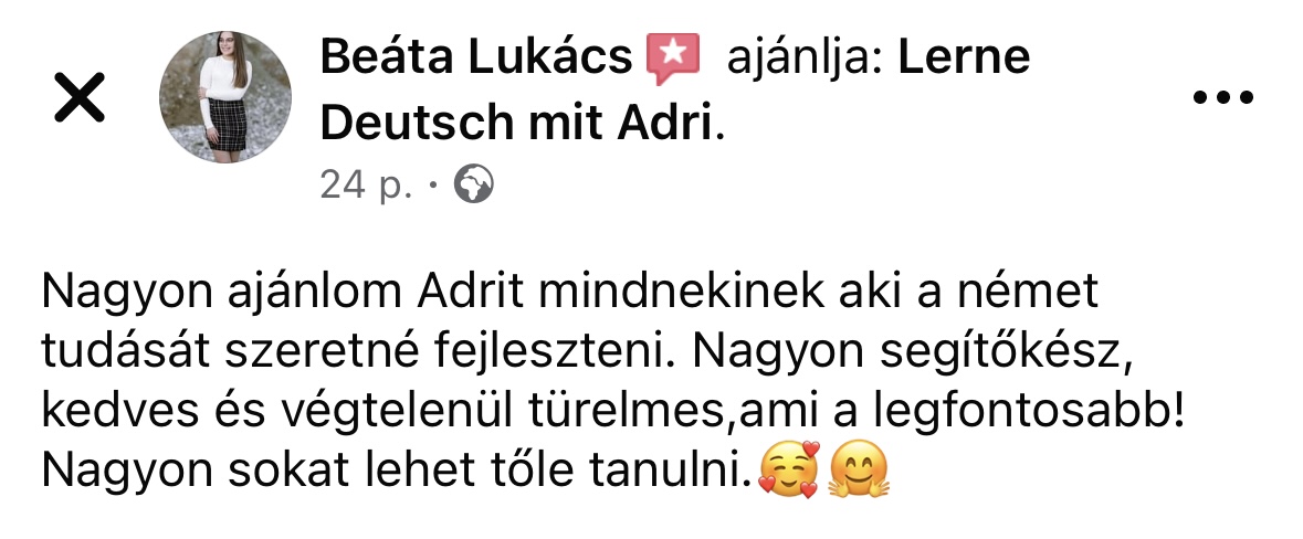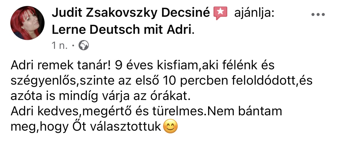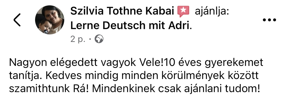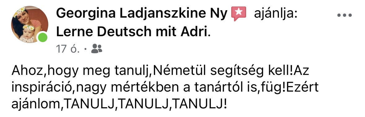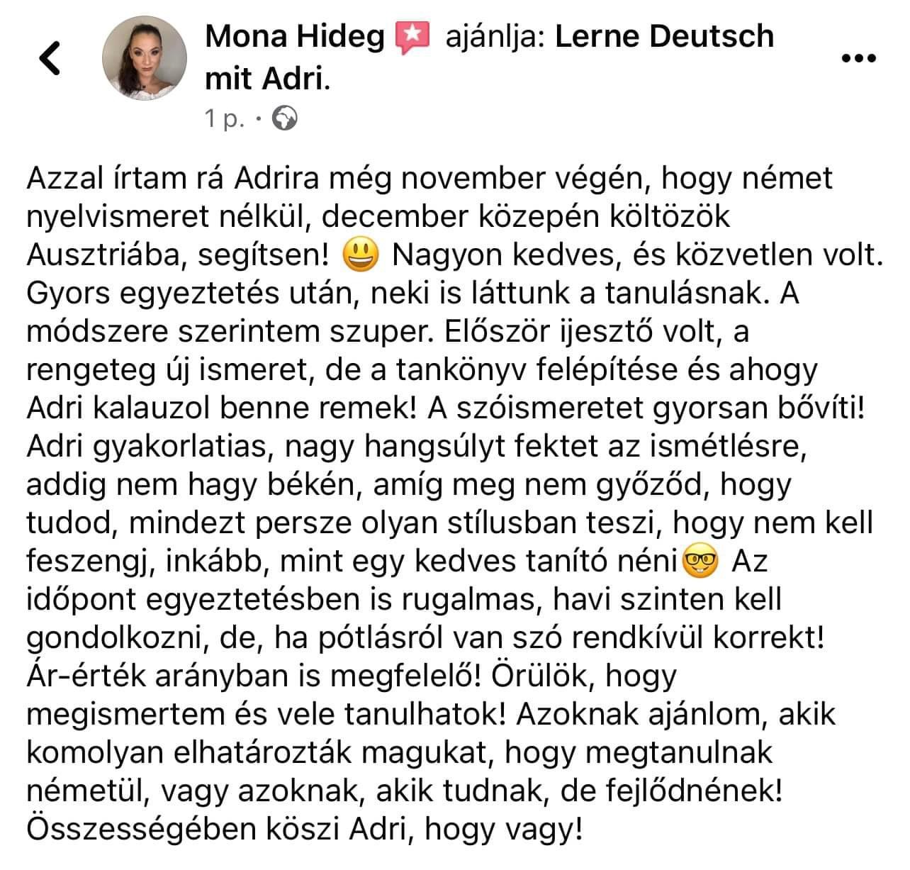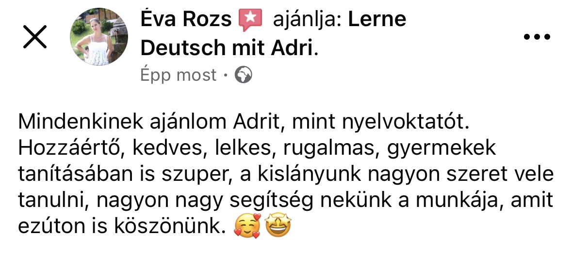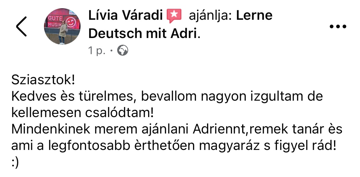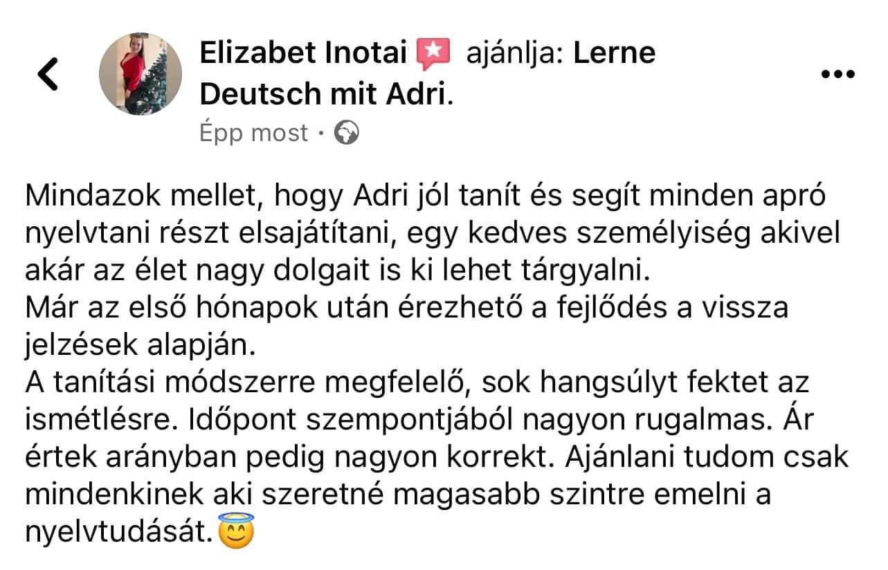 A legjobb visszajelzés mindig azoktól érkezik, akik már végigjárták az utat. Olvasd el, mit mondanak rólam azok, akik velem tanultak németül – hogyan segített nekik a közös munka, és milyen élmény volt számukra a tanulás. Lehet, hogy pont olyan kérdéseid voltak, mint nekik, és a válaszaikat náluk találod meg először.