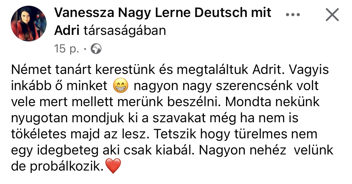 Nagy öröm számomra, hogy együtt dolgozhatok Rác Adrienn Klaudiával, aki a német nyelvterületen specialista. Így azoknak, akik szeretnék fejleszteni a német nyelvtudásukat , közösen tudunk teljes körű támogatást adni – legyen szó dokumentációról, ügyintézésről vagy nyelvi fejlődésről.