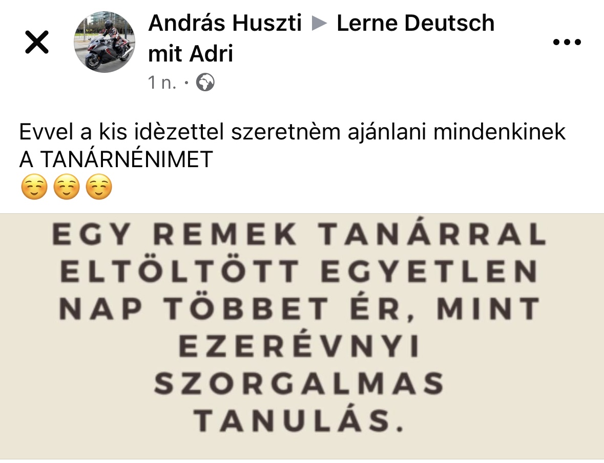 Némettanárként mindig is fontosnak tartottam, hogy ne csak a nyelvtanulásban, hanem az élet más területein is hiteles és hasznos kapcsolódásokat tudjak ajánlani azoknak, akik követnek vagy velem tanulnak.